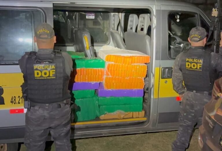 Policiais militares do DOF (Departamento de Operações de Fronteira) apreenderam, nesta segunda-feira (8), na MS-480, em Anaurilândia, 470 quilos de maconha que eram transportados em uma van escolar. Na ação, cinco homens com idades entre 34 e 45 anos e uma mulher de 31 anos foram presos.
