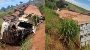 Motorista morre prensado após tombar carreta na MS-386, em Japorã