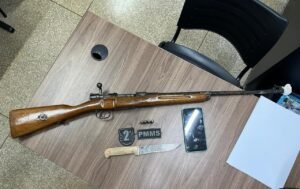 Polícia Militar em Brasilândia apreende arma de fogo de uso restrito e prende autor por ameaça e posse irregular