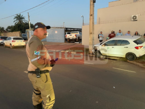 Com o impacto, um dos veículos perdeu o controle e se chocou contra o poste. Apesar do grande susto e dos danos materiais, não houve feridos.