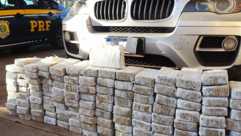 Diante da suspeita, os policiais realizaram uma busca no interior da BMW, ocasião em que a equipe encontrou um fundo falso no assoalho do veículo. Assim, estavam 130 quilos de pasta base de cocaína e 1,1 kg de cloridrato de cocaína.