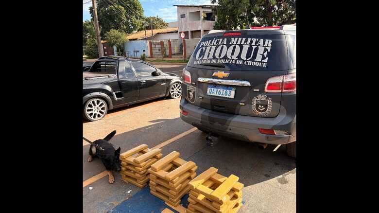Uma ação do Batalhão de Polícia Militar de Choque (BPChoque) resultou na apreensão de 46 quilos de maconha na manhã desta quarta-feira (15), em Campo Grande. As equipes contaram com o apoio do cão farejador Aron para encontrar as substâncias.
