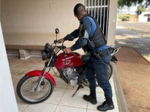 Durante patrulhamento preventivo pelo bairro Santos Dumont 2, a equipe flagrou um homem realizando manobras perigosas, empinando uma motocicleta vermelha.