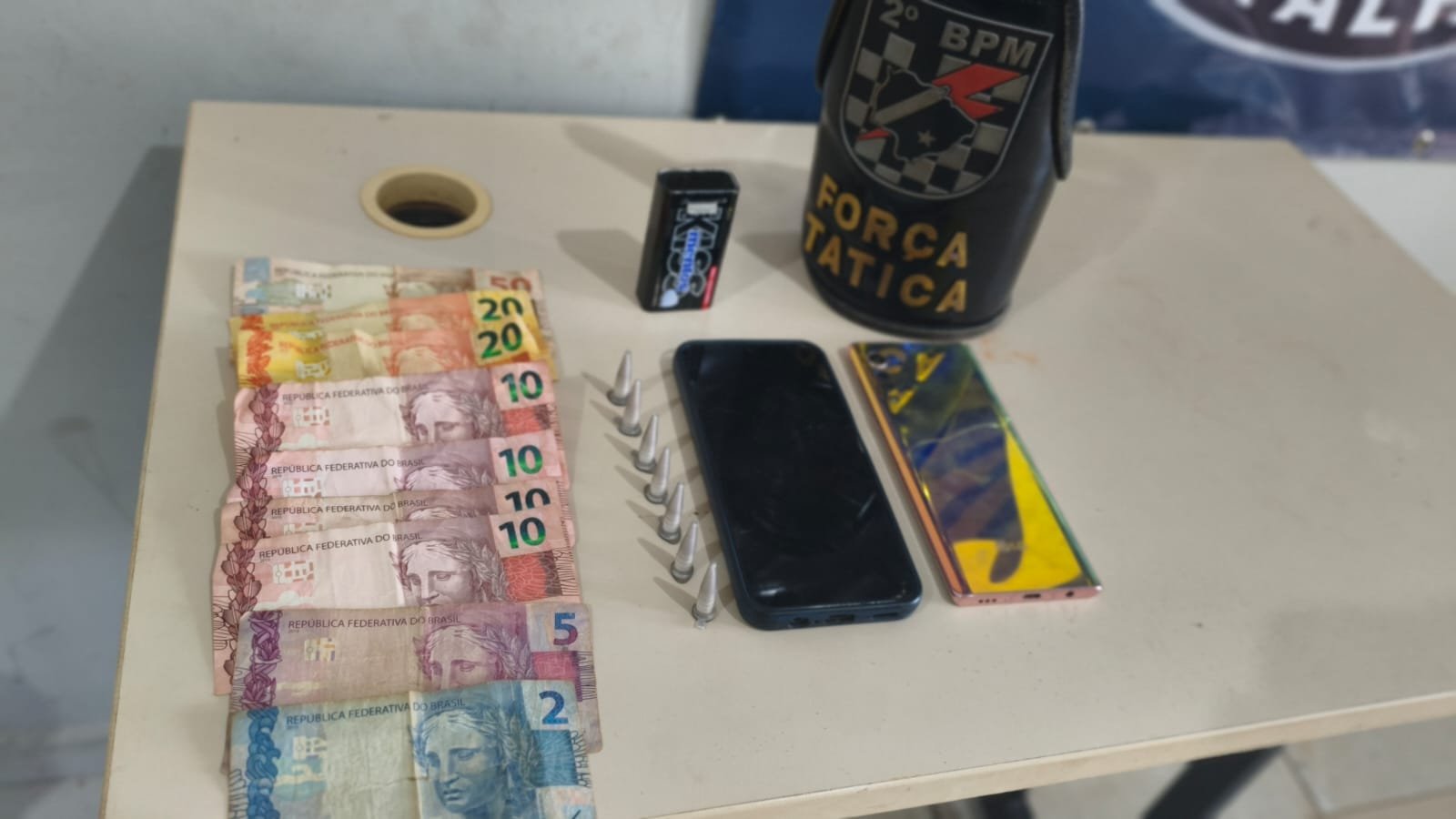 Neste domingo (12), por volta das 11h45, uma guarnição da Força Tática do 2º BPM durante patrulhamento ostensivo e preventivo na região do condomínio Novo Oeste, realizou a abordagem policial de um indivíduo de 22 anos, que se encontrava em um local já conhecido no meio policial como ponto de comercialização de entorpecentes e durante a busca pessoal localizaram em sua posse 7 “pinos” de cocaína e certa quantia em dinheiro, onde ao ser questionado sobre a droga relatou comercializar o entorpecente.