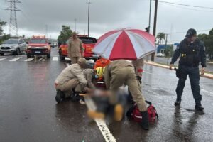 Devido ao impacto da colisão, o motoentregador sofreu fraturas no membro superior direito e membro inferior esquerdo. Ele, que trabalha em uma empresa de transporte de medicamentos e insumos médicos, foi socorrido pelo Corpo de Bombeiros e deve ser encaminhado ao hospital. No momento do atendimento no local, o rapaz reclamava de fortes dores.