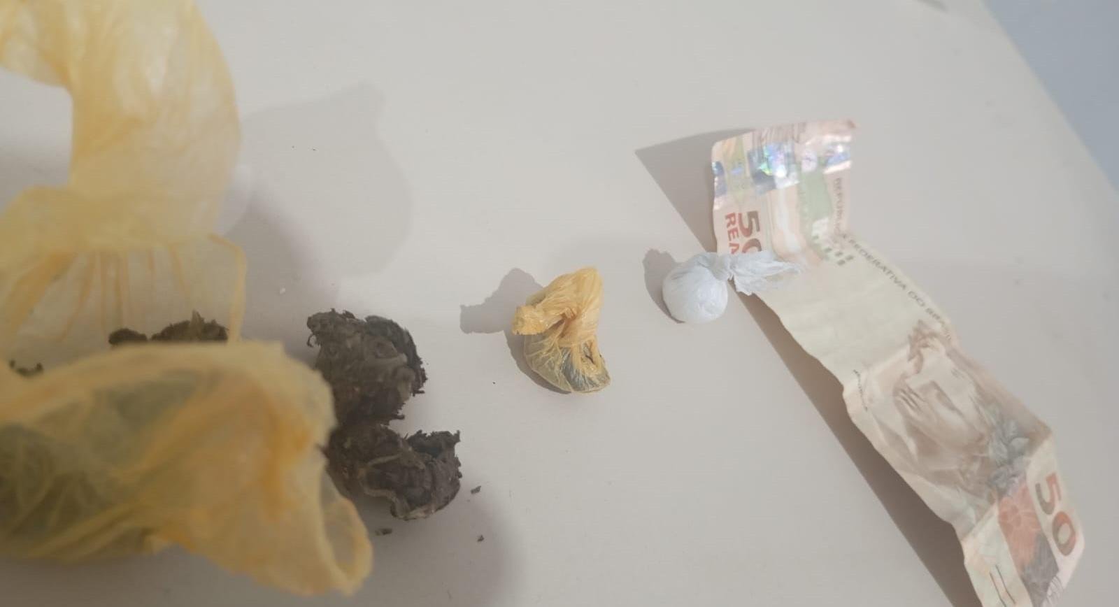 A ocorrência teve início minutos antes, quando dois irmãos, de 18 anos, e um adolescente de 17, foram abordados pela equipe da PM no bairro Santa Rita, em conduta suspeita. Na revista pessoal, os policiais encontraram porções de maconha e cocaína, além de uma cédula de R$ 50,00.