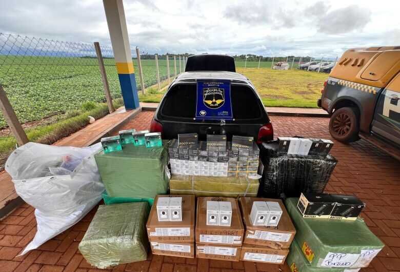 A apreensão aconteceu por volta das 14h40, no km 158 da rodovia, após policiais da Base Operacional de Maracaju abordarem um veículo VW Gol. Durante a vistoria, foram encontrados diversos produtos vindos do Paraguai sem documentação fiscal ou comprovação de importação regular.