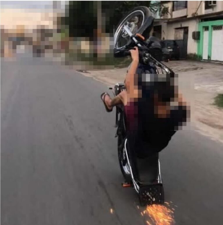 O “show” para impressionar a namorada terminou no chão, com lesões, prejuízo, a moto apreendida e o nome registrado na delegacia. Um exemplo claro de como a imprudência no trânsito pode transformar exibição em dor — e, neste caso, vergonha pública.