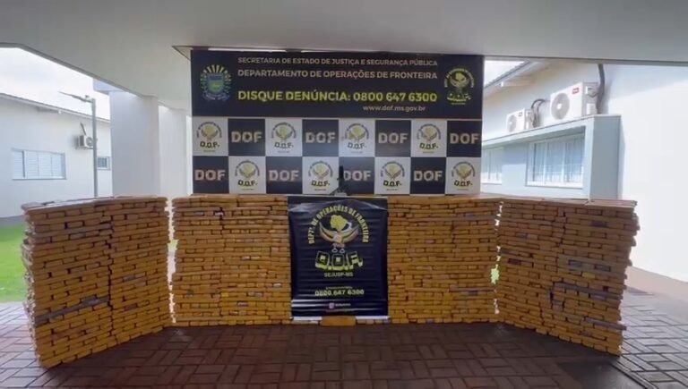 No interior do veículo foram encontrados diversos tabletes de maconha, que após a pesagem totalizaram mais de 1.800 quilos da droga. Em checagem aos sinais identificadores, constatou-se que as placas eram falsas e que a caminhonete havia sido roubada em 2024, na cidade de Sertãozinho (SP).