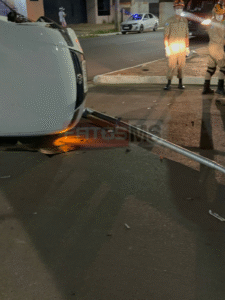 Um grave acidente de trânsito mobilizou diversas equipes de resgate e segurança na noite desta sexta-feira (09) em Três Lagoas. O condutor de uma VW Saveiro perdeu o controle da direção, colidiu violentamente contra um poste de iluminação pública e tombou na Avenida Rosário Congro.