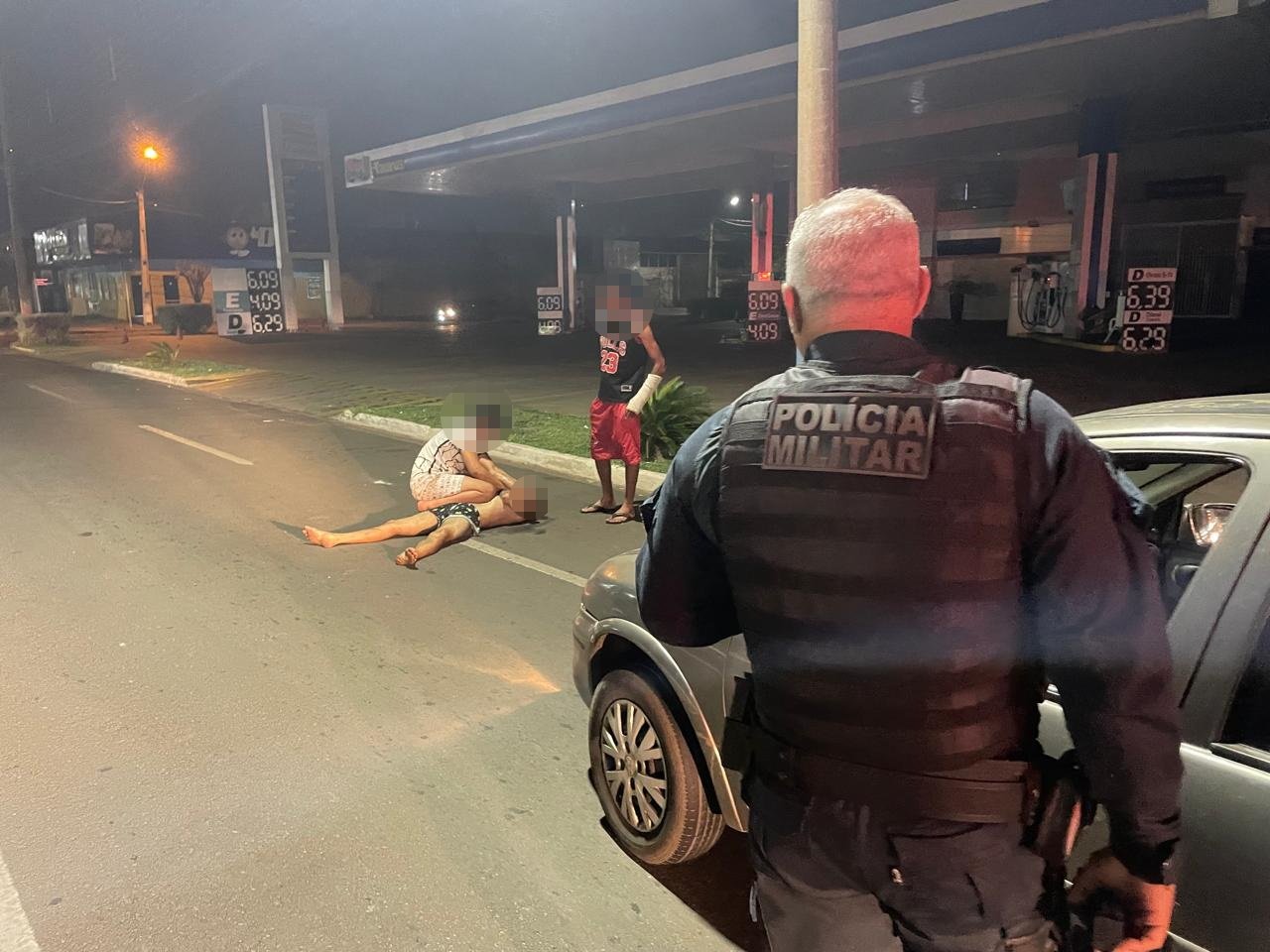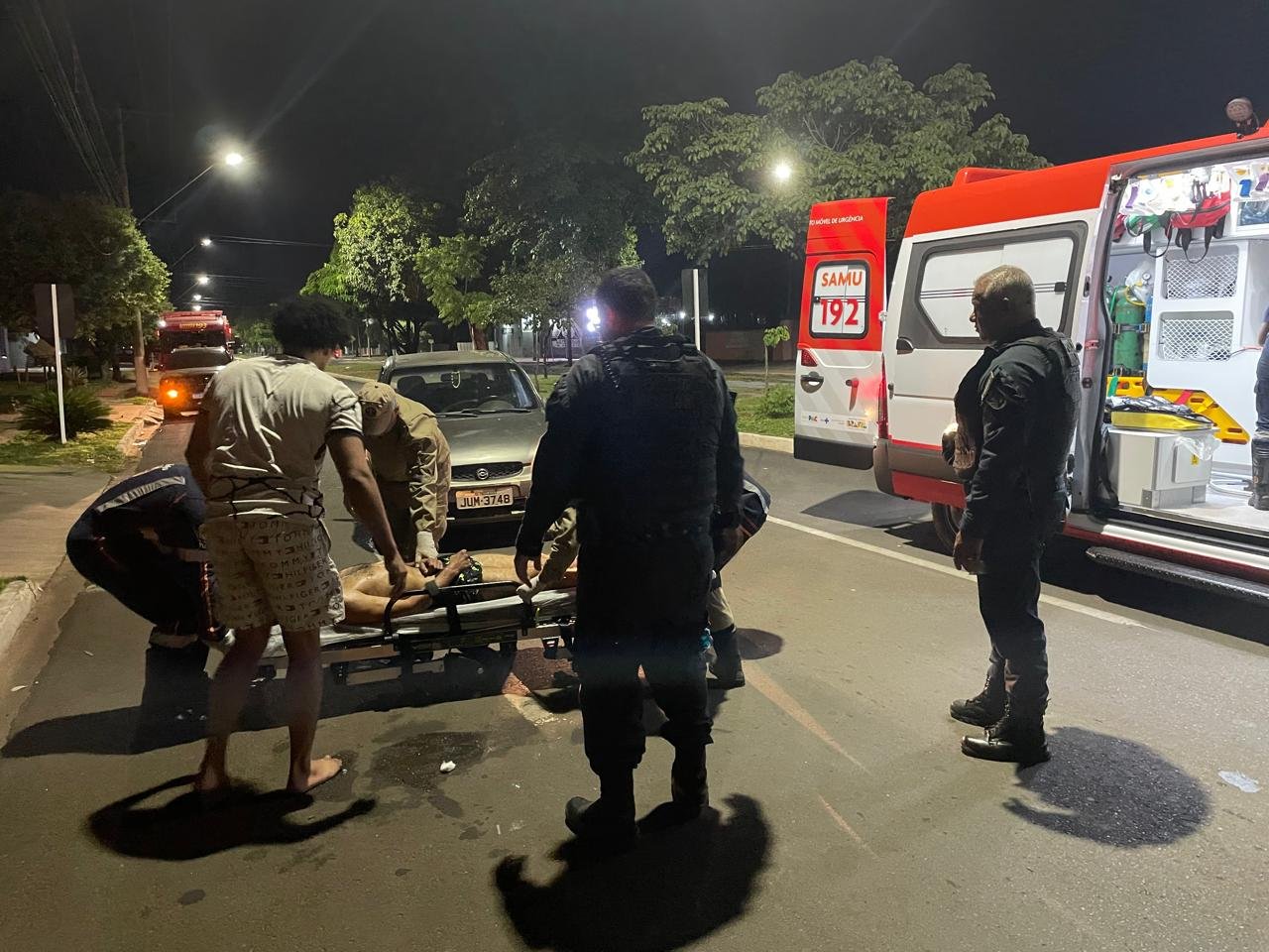 Pouco depois, dois vizinhos chegaram ao local em um veículo GM Corsa e ajudaram a conter o homem até a chegada do SAMU e do Corpo de Bombeiros, que o levaram à UPA para receber atendimento médico.