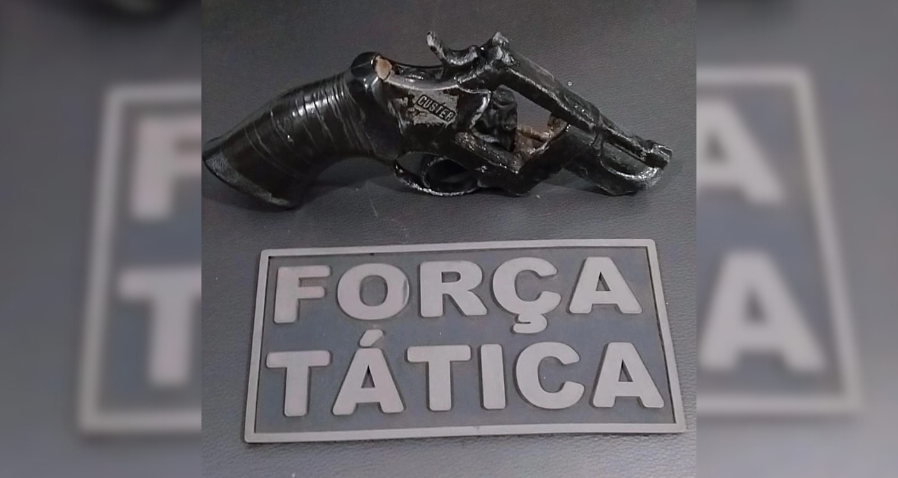 Ao chegar ao endereço indicado, policiais da Força Tática localizaram o suspeito e procederam à abordagem. Durante a busca pessoal, os militares encontraram na cintura do indivíduo um revólver calibre .22, da marca Custer, sem munições, com numeração raspada e em péssimo estado de conservação. O suspeito possui diversas passagens policiais anteriores, incluindo furtos, roubos e tráfico de drogas.