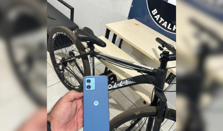 Nesta sexta-feira, durante a Operação Força Total uma guarnição da Força Tática após tomar conhecimento de roubo ocorrido mediante grave ameaça exercida com emprego de arma de fogo os autores roubaram uma bicicleta e um aparelho celular, os policiais iniciaram diligências onde durante análise das imagens de câmeras de monitoramento reconheceram um dos autores, que foi localizado e abordado no Condomínio Arara.