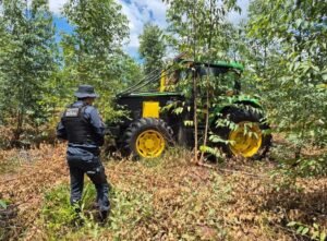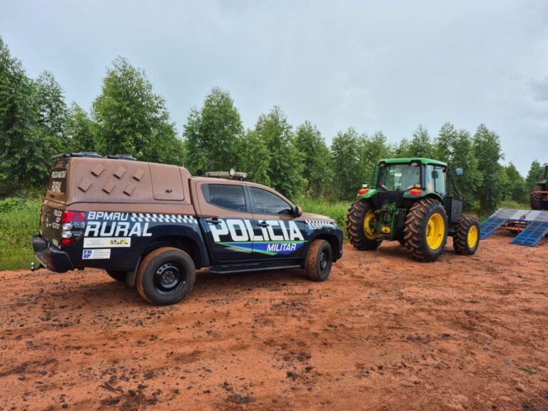 A ação teve início após a equipe policial receber informações de que um trator estaria escondido em meio a uma plantação de eucaliptos, em uma fazenda localizada às margens da rodovia MS-112. Diante da denúncia, os policiais deslocaram-se até o local e, após buscas minuciosas, localizaram o maquinário agrícola, que estava ocultado no interior da vegetação, na tentativa de dificultar sua identificação e recuperação.