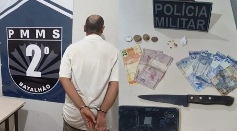 Nesta quinta-feira (25/12), a Rádio Patrulha do 2° Batalhão da Policia Militar prendeu D. F. da C.de 36 anos, vulgo “Maozinha”, por tráfico de drogas no bairro Jardim Paranapungá em Três Lagoas.Com ele, os policiais apreenderam pedras de crack, uma porção de cocaína, dinheiro em espécie, uma faca e um aparelho celular.