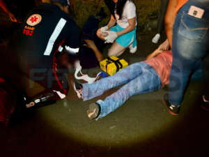 A equipe do SAMU foi acionada e prestou os primeiros socorros à vítima, que estava consciente e orientada, apresentando ferimentos na face e possível fratura na perna esquerda. O homem foi encaminhado ao Hospital Auxiliadora.